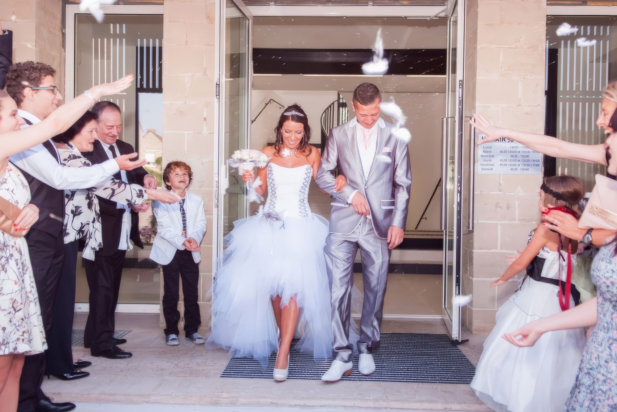 - Présence pendant le tournage pendant les préparatifs, mairie (si existe), parc (si existe) et toute la soirée jusqu'à la pièce montée